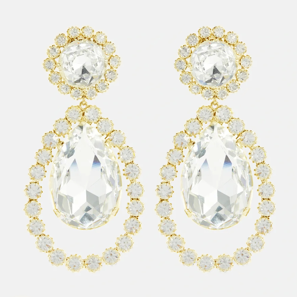 Dramatic, opulent, and undeniably glamorous, the Regal Radiance earrings are a statement of pure luxury. Featuring a bold teardrop crystal suspended within a halo of dazzling rhinestones, these earrings exude elegance and sophistication. The oversized stud is adorned with a brilliant-cut crystal, ensuring maximum sparkle with every movement. Designed for those who embrace bold fashion, these earrings are perfect for red carpet moments, gala nights, or any occasion where you want to shine like royalty.